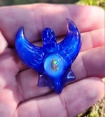 Sculpted in Molten Aura Neptune borosilicate, with a 3×5 mm black marquis opal set in the core. Vivid ocean blue glass with shifting depths, a small guide born of tide and starlight.